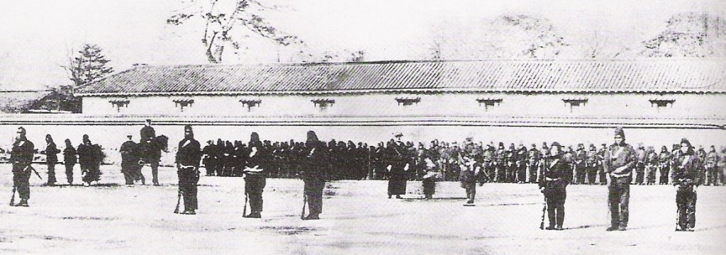Début 1868, la guerre civile éclate. On a restitué à l’empereur le pouvoir suprême : Tokugawa n’est plus qu’une ombre à effacer. Il en vient aux mains avec des clans proches du mikado à Fushimi et à Toba en janvier. Les quinze mille hommes du shogun forment une milice bariolée, reflet de sa formation incomplète : on y retrouve des lanciers, des épéistes, des samouraïs en armure, mais aussi des soldats en uniformes français munis d’armes à feu. Dans le camp d’en face, complètement modernisé, on dispose de mitrailleuses Gatling et d’obusiers anglais…