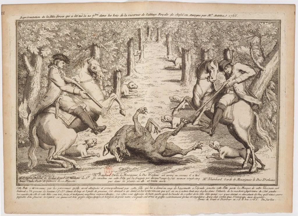 Le roi Louis XV, justement, s’émeut de cette triste affaire : il offre une prime juteuse – six mille livres – à quiconque lui rapportera la tête de la créature. Les meilleurs louvetiers de la région se précipitent en Gévaudan, avec valets et chiens, « pour y donner la chasse au monstre ». Martin d’Enneval, un chasseur normand ayant abattu plus de mille bêtes, fait chou blanc. De l’autre côté de la Manche, les gazetiers anglais s’en donnent à cœur joie pour moquer les battues infructueuses de leurs vieux ennemis. Le Courrier d’Avignon s’en indigne le 26 avril 1765 : « On lit dans une de leurs feuilles du 29 mars qu’une armée française de 120 000 hommes a été défaite par cet animal qui, après avoir dévoré 25 000 hommes et avalé tout le train de l’artillerie, s’est trouvé le lendemain vaincu par une chatte dont il avait dévoré les chatons ». Il ne manquait plus que les railleries des Anglais !