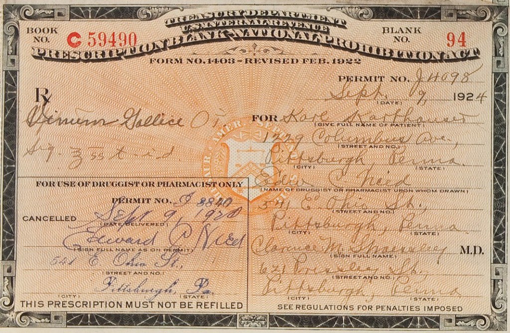 Ceux qui préfèrent ne pas engraisser le crime organisé se tournent vers des alternatives légales. Selon les termes de la « loi sèche » qui encadre la Prohibition, il est toujours possible d’obtenir son whisky sur prescription médicale… Autant dire que de nombreuses pathologies, de la grippe à la rage de dents, justifient de s’anesthésier au « gin de baignoire » (bathtub gin) ou au whisky médicinal. Les pharmacies s’engouffrent dans la brèche, prescrivant des élixirs contre une poignée de dollars.