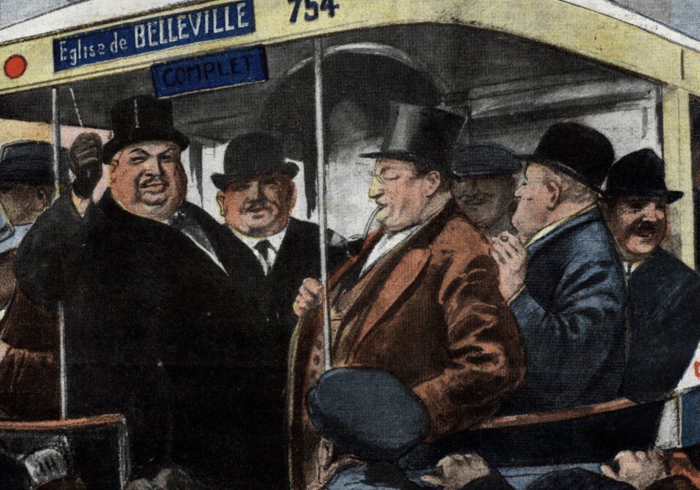 Rien de surprenant, donc, à ce que des clubs réservés aux ventrus voient le jour dans la seconde moitié du XIXe siècle. Anecdotique en Europe (une brasserie parisienne a brièvement été le siège du « Club des 100 Kilos »), la tendance galvanise surtout les États-Unis, où le tour de taille est généralement proportionnel à l’épaisseur du portefeuille. La première association du genre voit le jour à New York en 1869. En quelques années, de nombreuses autres lui emboîtent le pas : le Fat Men’s Club du Connecticut, le Jolly Fat Men’s Club de Washington, l’association des Heavyweights (« poids lourds ») de l’État de New York, le Fat Men’s Bicycle Club de Brooklyn… Tous ouvrent leurs – larges – portes aux individus les plus corpulents. Seule condition d’entrée : peser au moins 200 livres, soit 91 kilos.