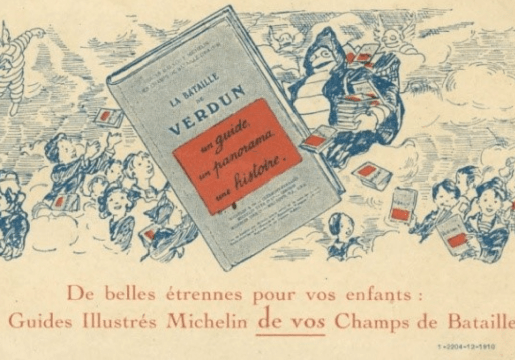 En septembre 1917, l’entreprise auvergnate développe une nouvelle offre : des manuels accompagnant les visiteurs sur les champs de bataille de 14-18. « Avec ce guide, Michelin souhaite fournir des indications pratiques à tous ceux qui souhaiteraient découvrir le théâtre des combats, explique Deborah Vaisseix, responsable de la conservation et de la valorisation des collections historiques chez Michelin. Mais il s’agit également de faire œuvre patriotique et de rendre hommage aux combattants tombés pour la France, et tout particulièrement aux ouvriers de la Manufacture. » En effet, 3 500 des 5 000 employés Michelin ont été mobilisés pendant la Grande Guerre.